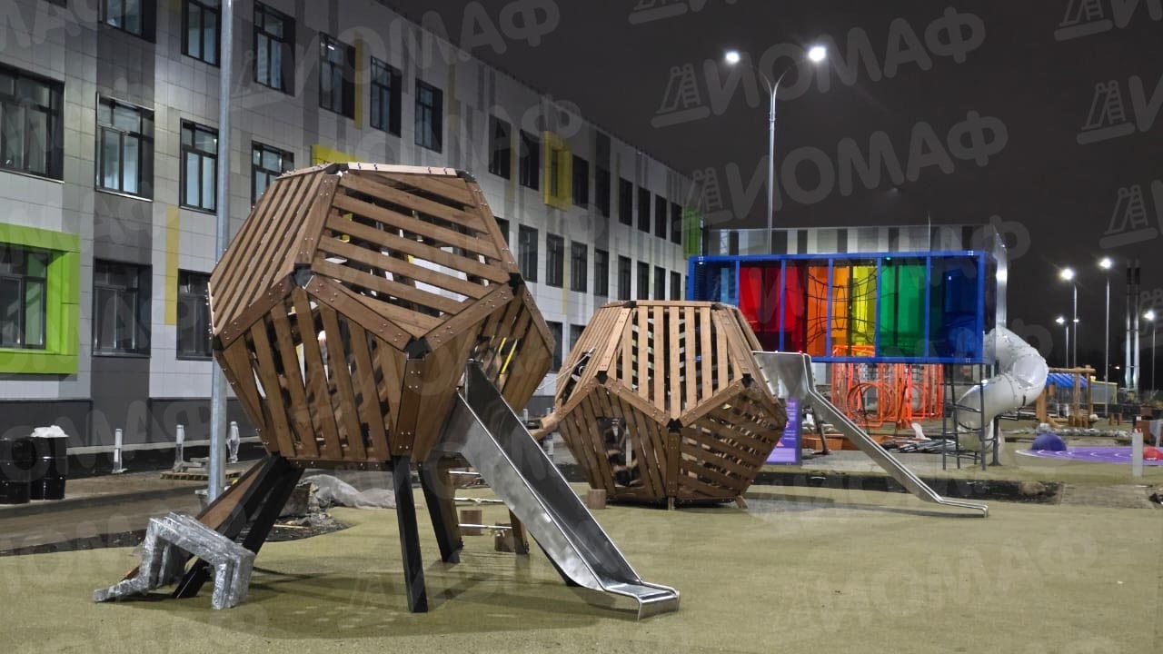 Не обошлось и без трудностей! На производство самых габаритных и сложных изделий, сделанных из робинии и лиственницы, а именно "Куб с пространственной сеткой" и три детских комплекса, состоящих из башен-додекаэдров, горок, канатов и массивных столбов, имеющих естественную кривизну ствола в эко-стиле, потребовалось больше времени, чем мы планировали. Поставка данного оборудования состоялась только в середине осени.